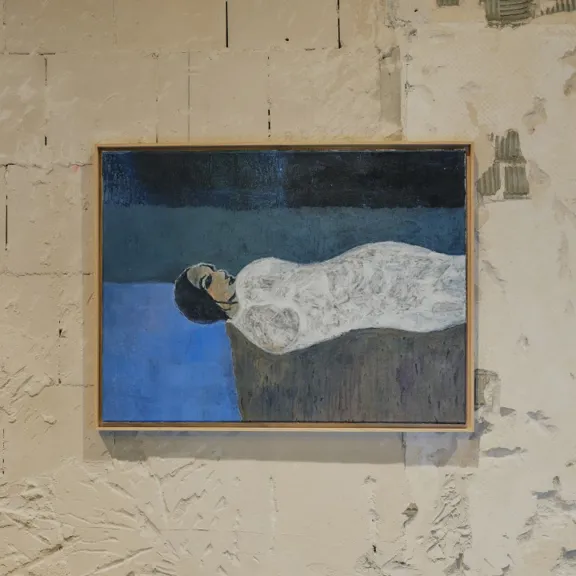 All the works have organic forms. There's a natural response to them, but it's hard to say exactly what you're looking at sometimes. Take Kanta Kimura's piece, Untitled, 2025 - on first look, you might think it's a mountain range, but actually, look again. Perhaps it's animal scales, or waves. Paintings evolve over time, and so do your feelings about them. My hope is that you'll come through the lobby time and time again, and the image will shift depending on where you are in your own life. Depending on how you’ve wandered through time and space yourself.