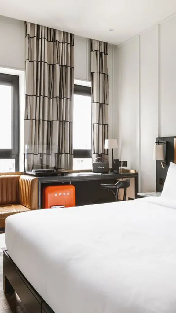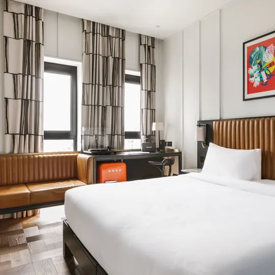 The city looks good from here. Our double room is perfect for duos who love a room with a view and space to loosen up. Your choice of double or twin beds. Sleeps two.