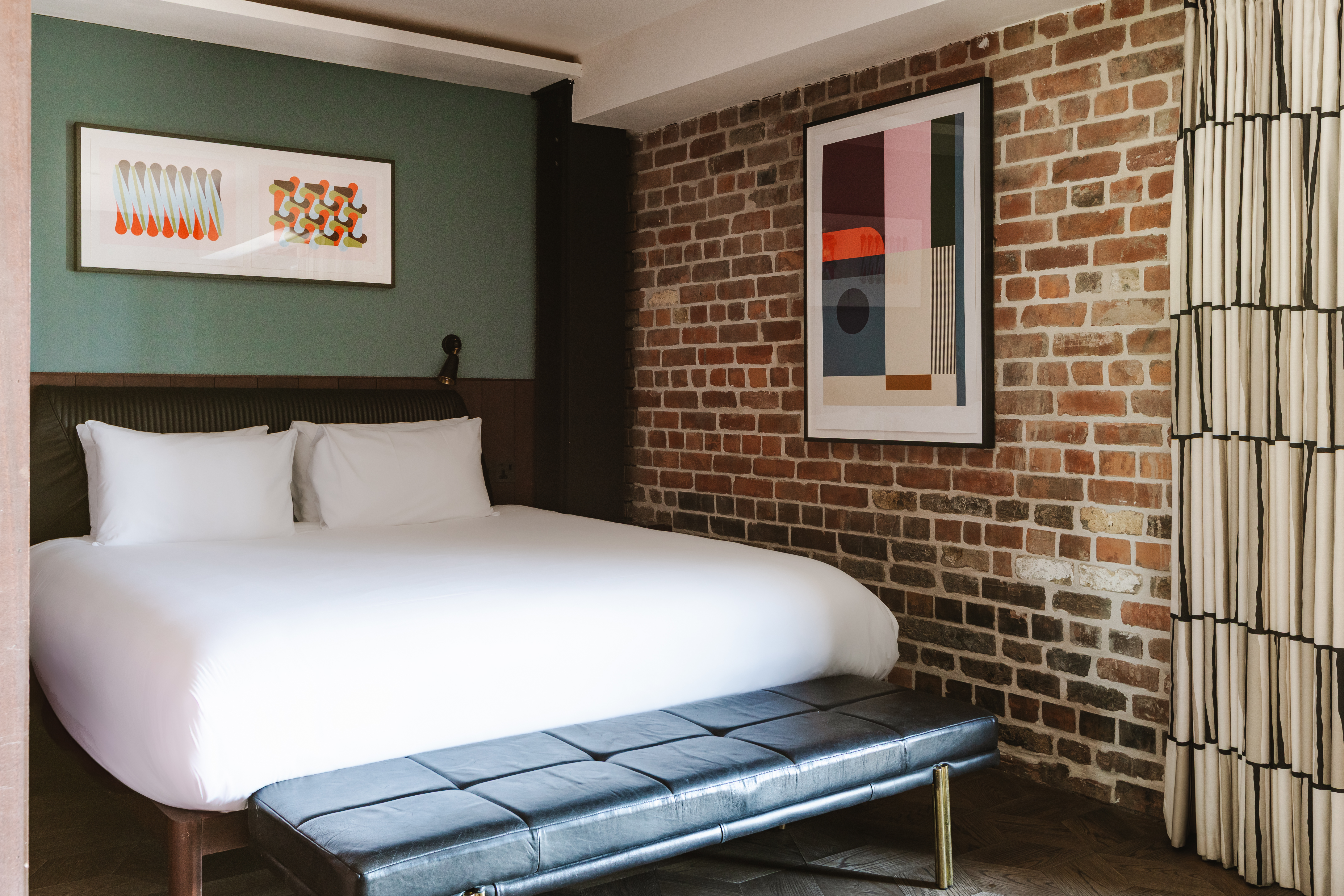 Our Warehouse Double Rooms in Dublin City Centre that range in size from 16 to 22 sq. m and are located on the first and second floors. Sitting within the original facade of the warehouse, the interiors are inspired by this building’s industrial beginnings. With exposed brick and large windows, the rooms are filled with natural light.
