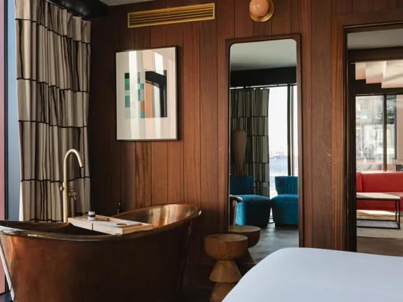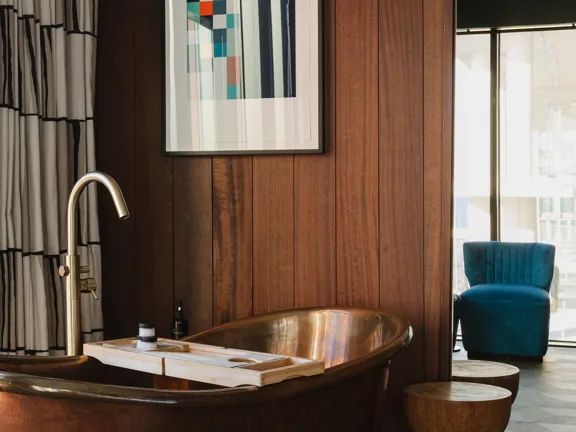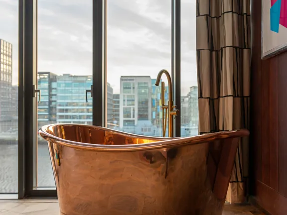 Our Luxury Boutique Suites in Dublin range in size from 30 – 42 sq m. Each Warehouse Suite offers great views of The Liffey. Need to get connected? No problem, each room has high-speed wi-fi. We’ve got your entertainment needs covered with a Netflix enabled Samsung Smart TV and a Marshall amp to hook up your tunes or catch up on your favourite podcast. Choose an LP from your in-room selection and give them a spin on your Audio-Technica vinyl player.