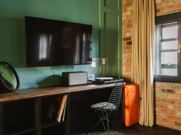 Whether it’s an overnight stay or a celebration. Two bedrooms and The Loft can accommodate groups of up to 20 to 25 standing for break-out meetings, team building days, product launches, presentations, cocktail tastings, hen or stag parties, foosball tournaments, album playbacks and general fun. Fully fitted kitchen. Beer taps. Bar stools. Irish sweet & savoury treats. Gas Fireplace. Ligne Roset Ploum sofa. 70” Samsung Smart TV. Netflix. Vinyl Record Player & classic vinyl by the dozen. Session: Martin & Co. Limited Edition guitar. Eight seat poker table. Foosball table & so much more.