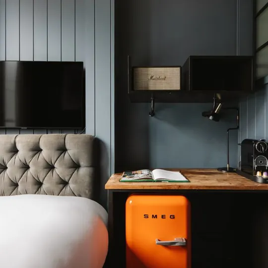 Cleverly designed with three in mind. A double and single bed share the space, with an ensuite bathroom, soft light, and warm touches. Everything you need-just bring good company. Sleeps three.