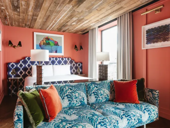 Whether it’s an overnight stay or a corporate event, the Penthouse is the perfect intimate space. Two bedrooms and The Loft can accommodate groups of up to 20 to 25 standing for break-out meetings, team building days, product launches, presentations, foosball tournaments or album playbacks. Bar stools. Irish sweet & savoury treats. Ligne Roset Ploum sofa. 70” Samsung Smart TV. Netflix. Eight seat poker table. Foosball table & so much more.