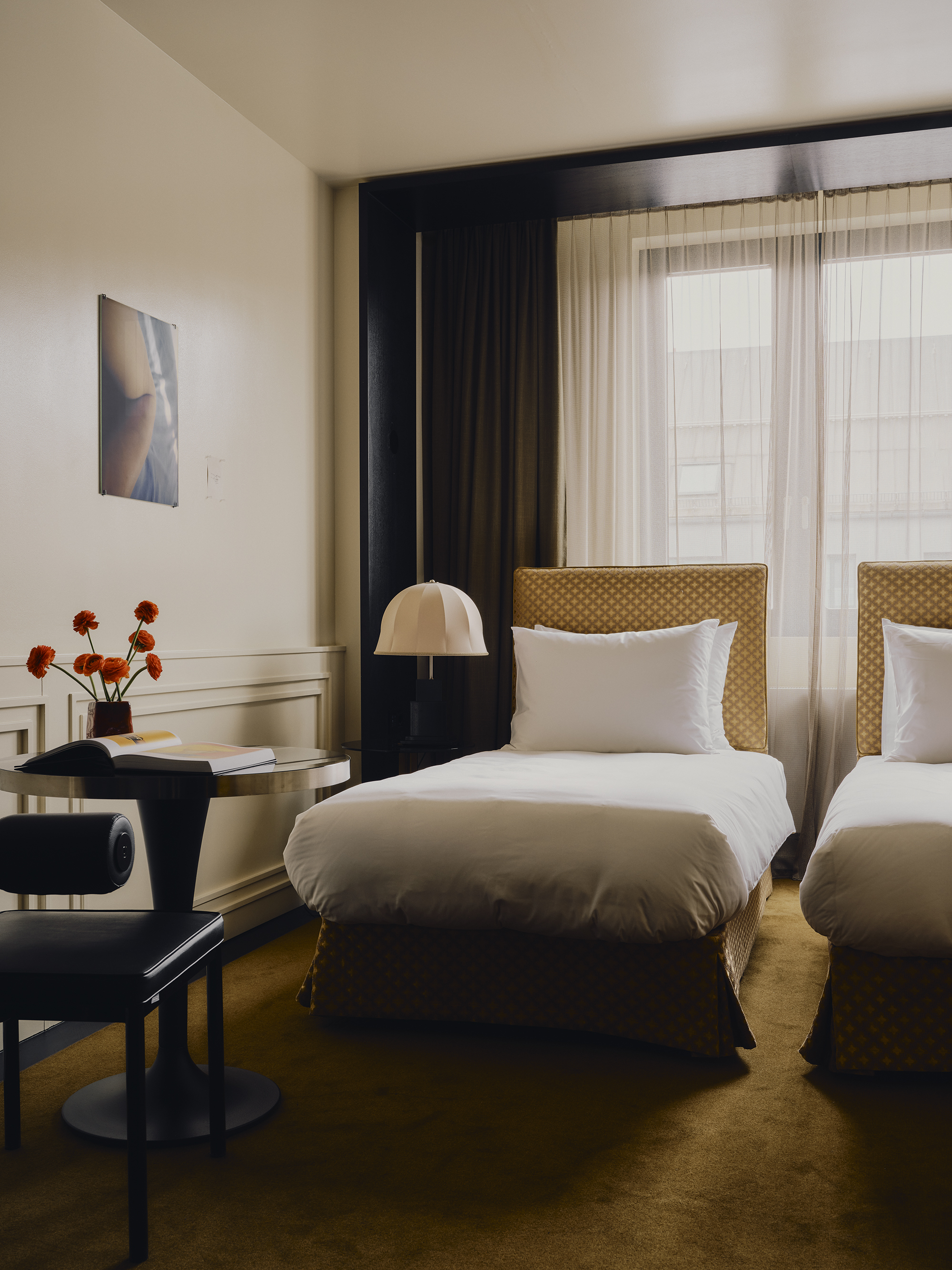 For those who appreciate a little extra space. King or twin beds, room to lounge, and a walk-in rain shower. Sleeps two.