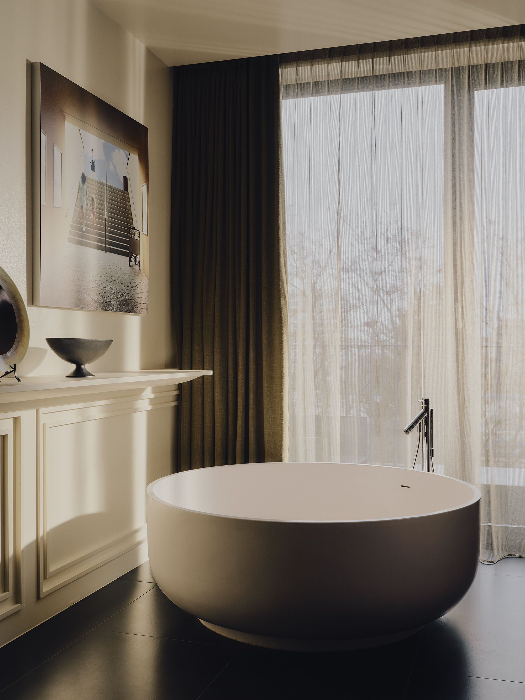 An even roomier suite. Plenty of space to spread out, with a king bed next to a free-standing bathtub, 15 sqm private balcony, and lounge area. Plus, a marble bathroom with a walk-in rain shower. Sleeps two.