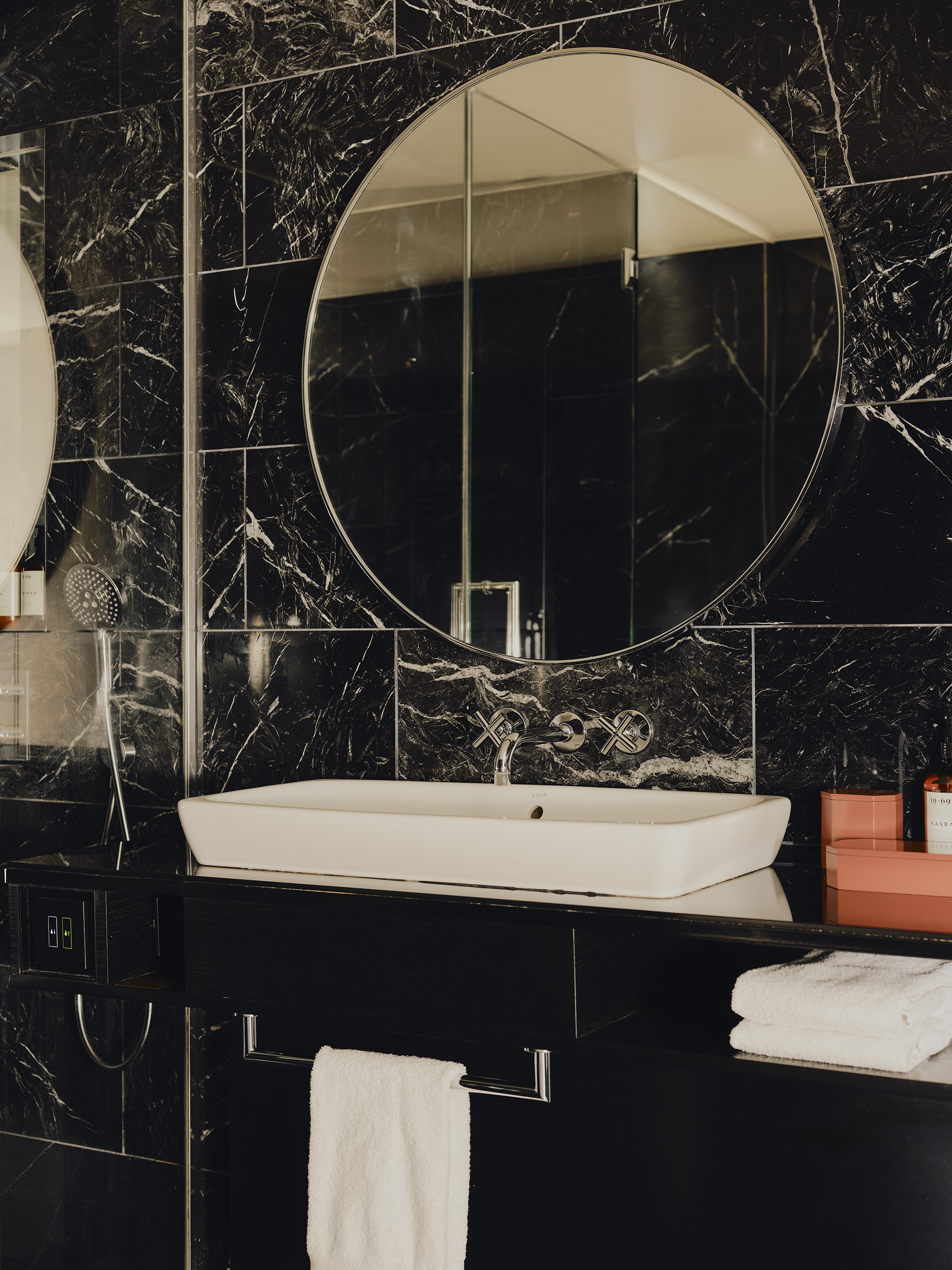 For those who like to host. A 95-sqm suite with a king-size bed, lounge, dining area, 30 sqm terrace, and a guest bathroom. Relax in the spacious bathroom's walk-in rain shower and free-standing bathtub. Sleeps two, or three with an extra bed.