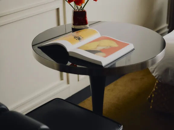 A suite to stretch out in. 57 sqm of charm, plus a walk-in closet, king-size bed, private bar, and 8 sqm private terrace overlooking Munich. Sleeps two.