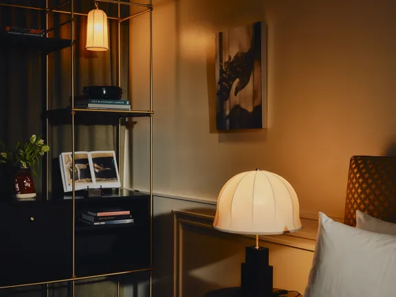 For those who appreciate a skyline view. A little more space with a view of the city, a large, comfy bed, room to lounge, and a marble bathroom with walk-in rain shower. Sleeps two.